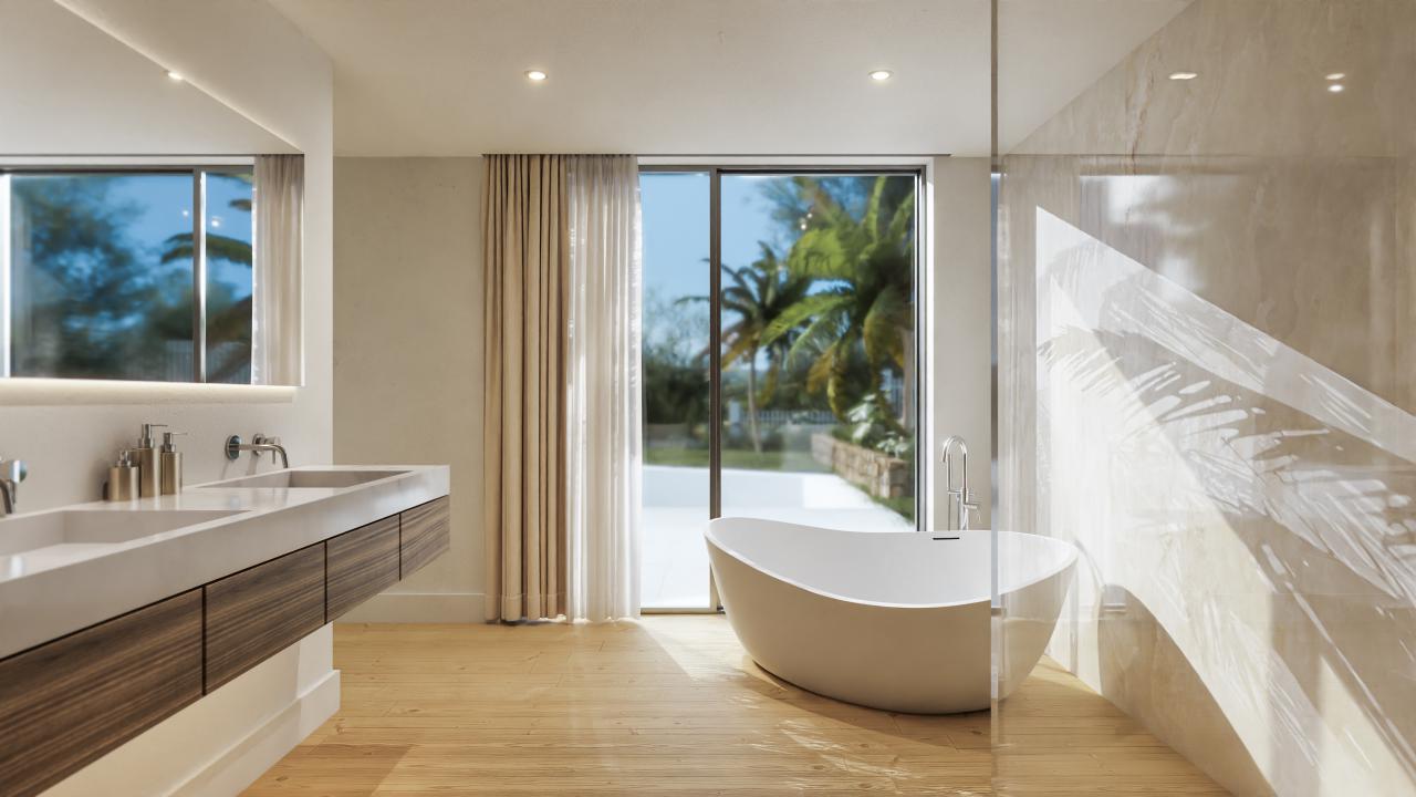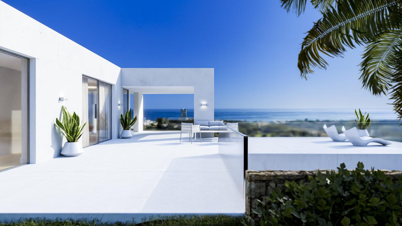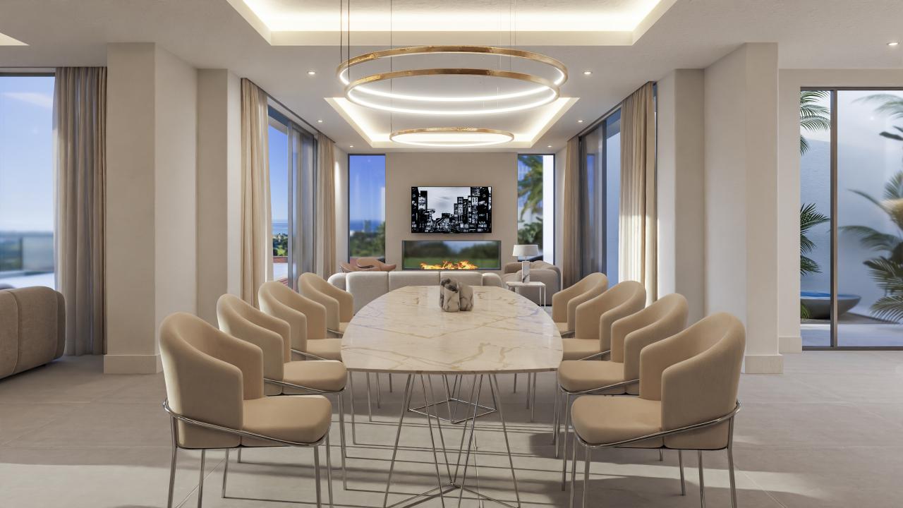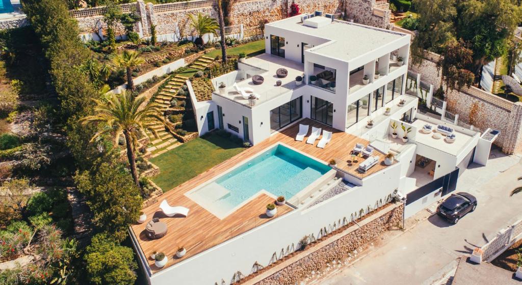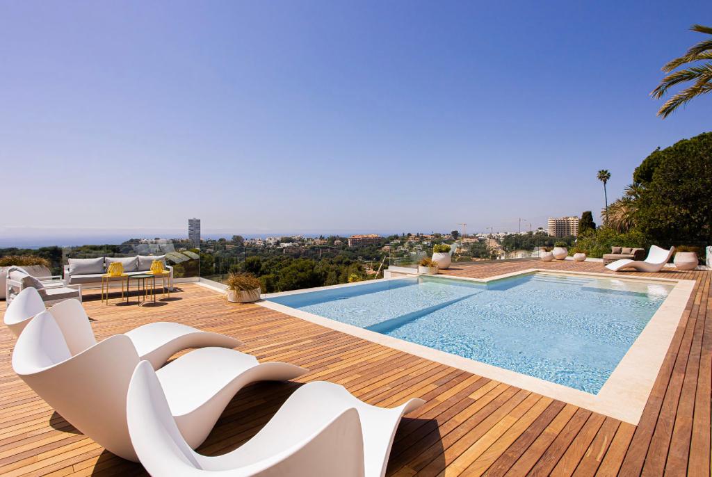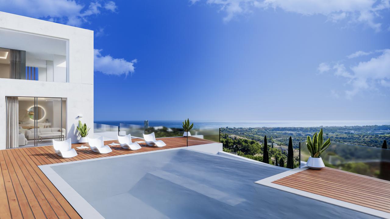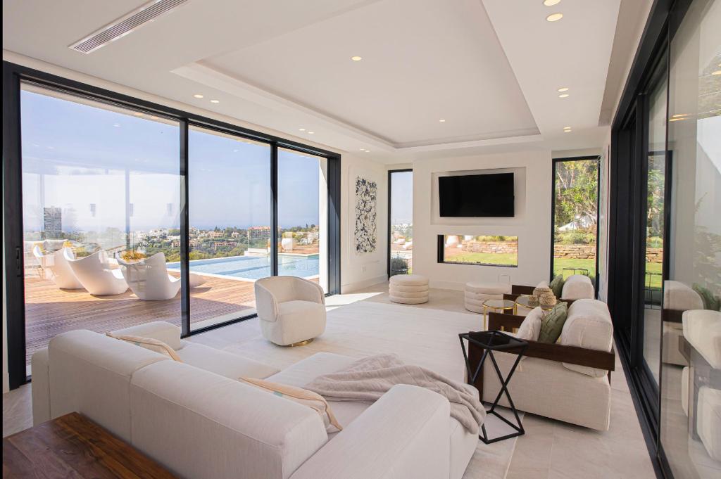 La villa Flora Dánica se encuentra también dentro de la urbanización Golf Río Real de Marbella. Construida en una parcela de 1.150 metros cuadrados que se alza sobre el campo de golf y unas impresionantes vistas al Mar Mediterráneo. Su ubicación permite tener una de las mejores vistas de la Costa del Sol. La villa está compuesta por sótano (76,37 m2), planta baja (146,20 m2) y planta primera (84,00 m2). En total dispone de 4 dormitorios y 4 baños, además de espectaculares terrazas, una piscina infinity con vistas al Mediterráneo y un ascensor. La cocina está totalmente equipada con electrodomésticos de las primeras marcas, el sistema de calefacción y refrigeración es aerotermia, la villa está construida con suelos porcelánicos de 90x90 cm y en madera en el dormitorio principal que dispone de vestidor y baño propio.