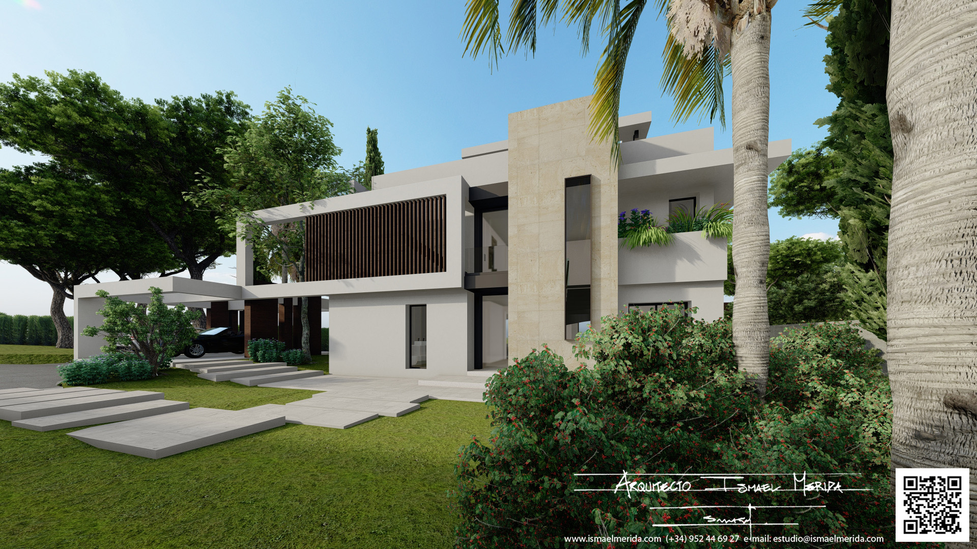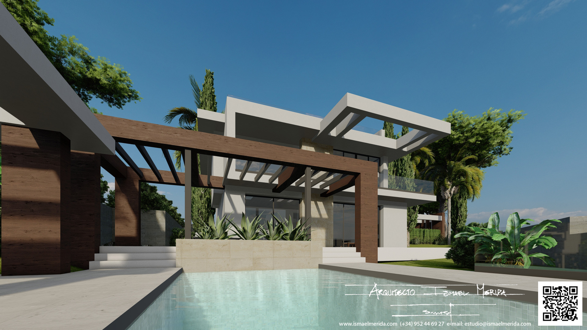 Situada en la calle Támesis de la Urbanización Nueva Andalucía (Marbella-Málaga), la vivienda consta de 350 m2 construidos (260 m2 útiles) y dispone de 5 dormitorios, 4 baños y 1 aseo, piscina, garaje, suelo radiante, aire acondicionado y placas solares, además de una zona de chill-out. El proyecto ha consistido en una reforma integral para dotar a la villa de una estructura moderna y atractiva.